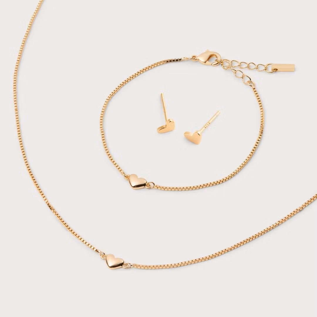 All I Want Heart combo korut tulevat kahtena versiona: kullattuna (18K) ja hopeoidusta messingistä. Kaikki korut ovat nikkelittömiä, ja kullattujen korujemme päällä on ylimääräinen paksu 18K-pinnoite, joka on tehty kestämään aikaa. Pakattu huolellisesti kierrätetystä ja FSC-merkitystä paperista valmistettuihin laatikoihin.