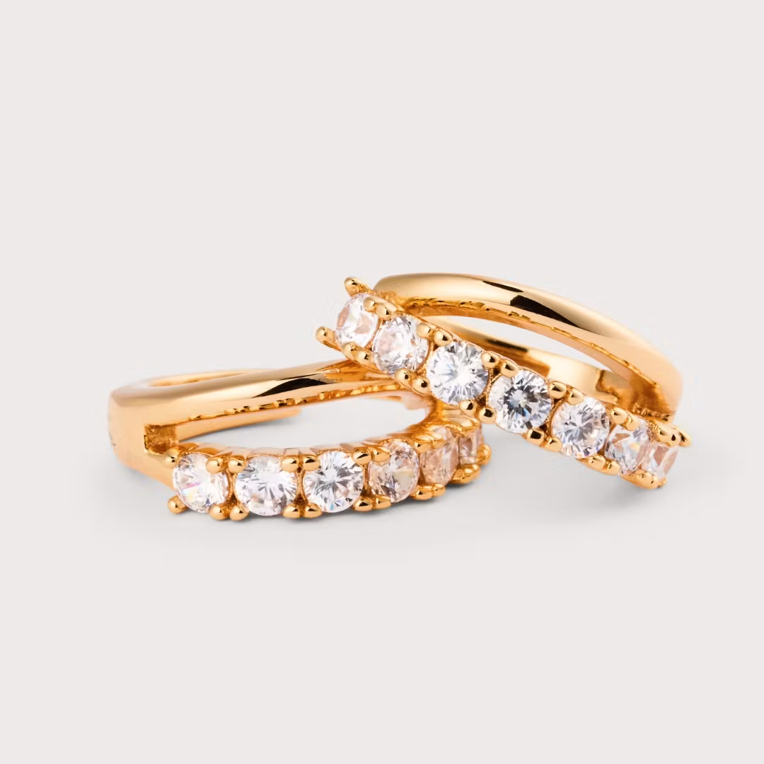 Kaksoisrenkaat, joissa on käsin istutetut zirkoniat.